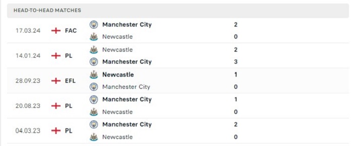 Bảng bóng đá trận đấu Newcastle vs Manchester City