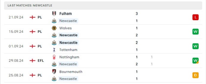 Phong độ gần đây Newcastle vs Manchester City