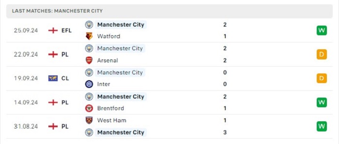 - Phong độ Manchester City