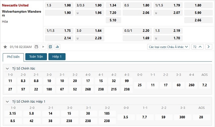 Soi kèo châu Á, kèo chấp Newcastle vs Wolves