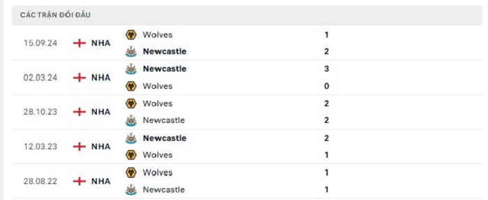 Phong độ gần đây Newcastle vs Wolves