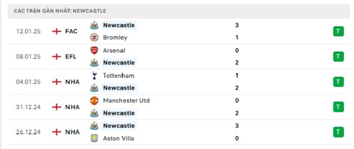 - Phong độ Newcastle