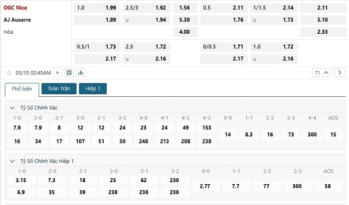 Soi kèo châu Á, kèo chấp Nice vs Auxerre