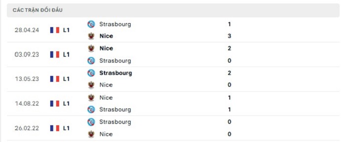 Lịch sử đối đầu của Nice vs Strasbourg
