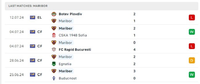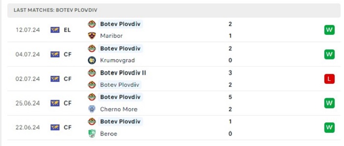 Phong độ gần đây NK Maribor vs Botev Plovdiv