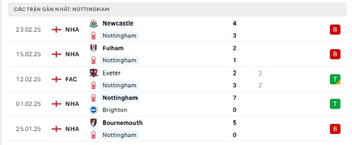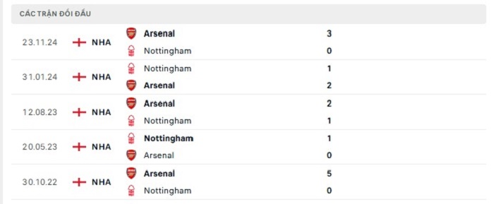 Phong độ gần đây Nottingham vs Arsenal
