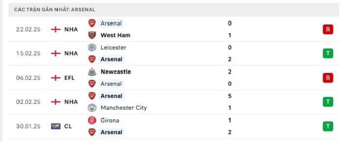 - Phong độ Arsenal