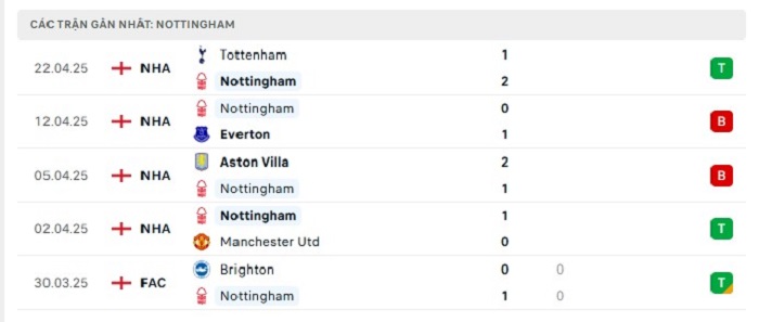 Phong độ gần đây Nottingham vs Manchester City