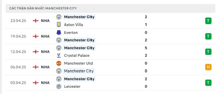 • Phong độ Manchester City