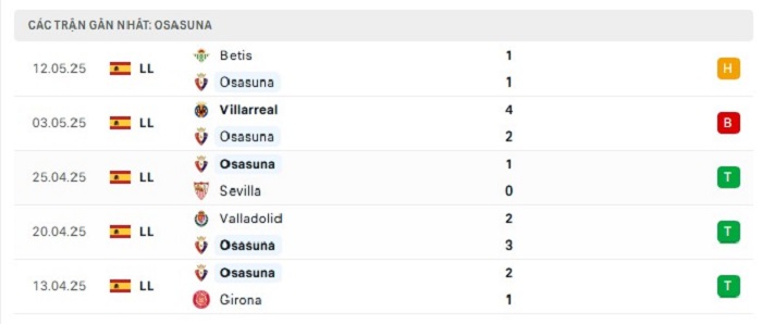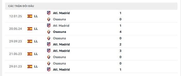 Phong độ gần đây Osasuna vs Atletico Madrid