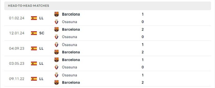 Vẫn biết là Osasuna ở mùa giải năm nay đang thi đấu thành công trên sân nhà, tuy nhiên thành tích quá khứ của họ trước Barcelona lại không mấy khả quan, thống kê có thể thấy được ở 9 lần gặp nhau gần nhất giữa hai đội thì Osasuna còn chưa biết tới mùi chiến thắng theo kèo châu Âu khi chỉ có được vỏn vẹn 1 trận hoà và nhận tới 8 thất bại. Với thành tích toàn thắng theo kèo châu Âu từ đầu mùa giải của Barcelona thì việc họ có thêm một thắng lợi cũng không phải là nhiệm vụ quá khó khăn với họ.