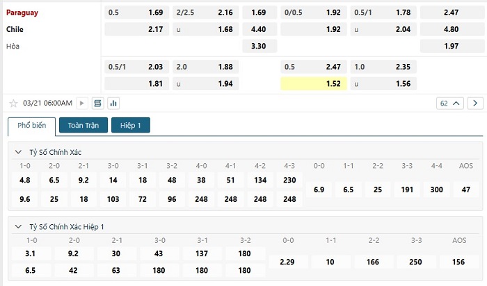 Soi kèo tỷ số Paraguay vs Chile