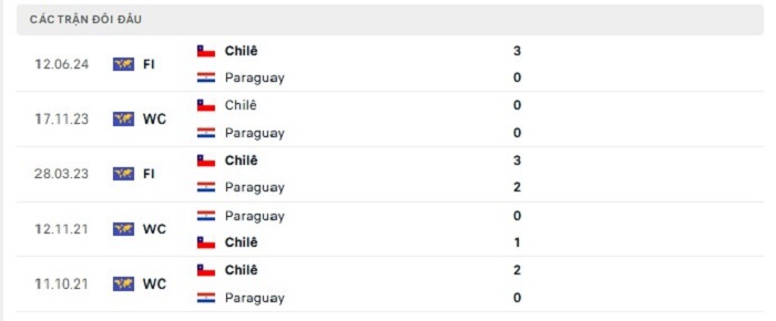 Lịch sử đối đầu của Paraguay vs Chile