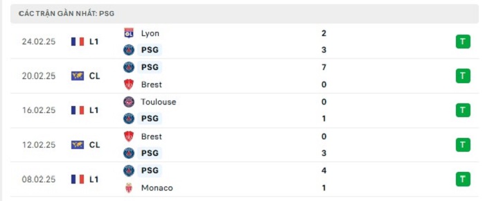 - Phong độ Paris Saint Germain