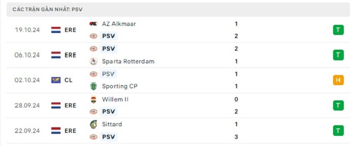 Phong độ gần đây Paris Saint Germain vs PSV Eindhoven