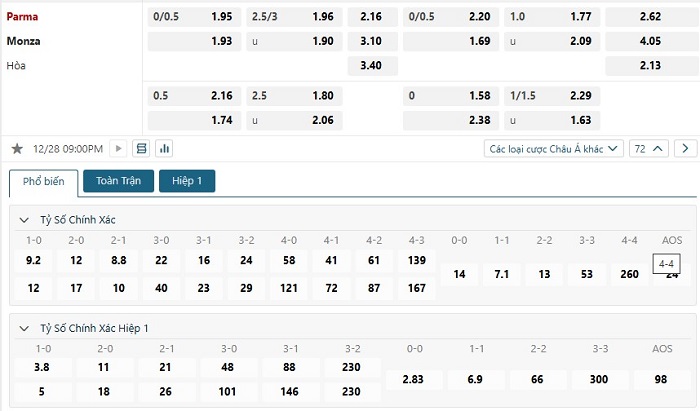 Soi kèo tỷ số Parma vs Monza