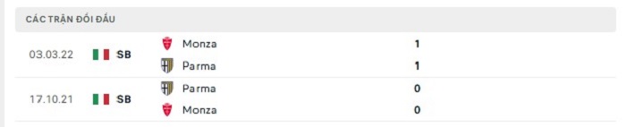 Cả 2 lần gặp nhau giữa Parma và Monza trong quá khứ cũng chỉ có được từ 2 bàn thắng ghi được trở xuống, kết quả này cho thấy giữa hai đội cũng thường thể hiện lối chơi chắc chắn mỗi khi gặp nhau. Mùa này hàng công của cả Parma và Monza đều không thể hiện được khả năng ghi bàn tốt trong khi với đội khách thì tỷ lệ nhận bàn thua của họ ở những trận ra sân cũng không quá cao, do vậy mà trận đấu sắp tới của họ cũng sẽ khó có thể xuất hiện tỷ số cao ghi được cho cả hai đội.