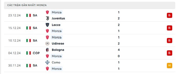 Phong độ gần đây Parma vs Monza