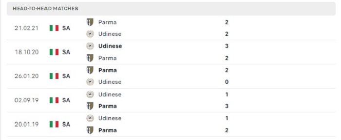 Trong quá khứ Parma có được những thành công trước Udinese khi có được 5 trận thắng kèo châu Âu trong 10 trận gặp nhau của hai đội, nhưng cũng có thể nhận thấy được Udinese cũng đã từng tạo nên không ít những khó khăn cho đội chủ nhà, về mặt phong độ mà nói tại Serie A hiện tại đội khách vẫn đang có được những kết quả khả thi hơn khi thắng kèo châu Âu ở 2 trong 3 vòng đấu của mình, chính bởi lý do này mà khả năng bất phân thắng bại của hai đội ở lần gặp nhau tiếp tới cũng là điều khả thi.