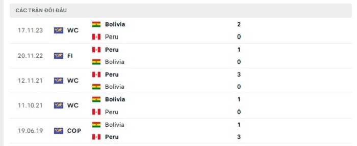 Bảng bóng đá trận đấu Peru vs Bolivia