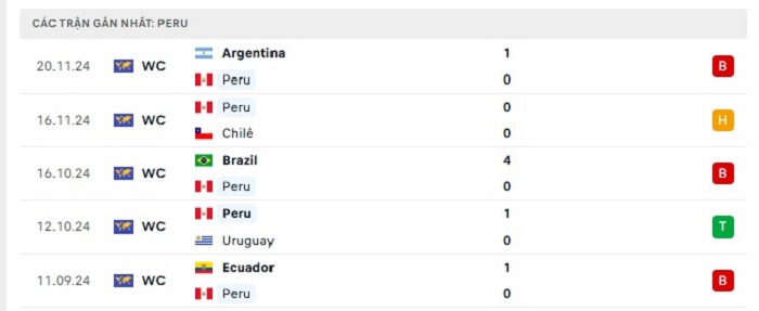 Phong độ gần đây Peru vs Bolivia