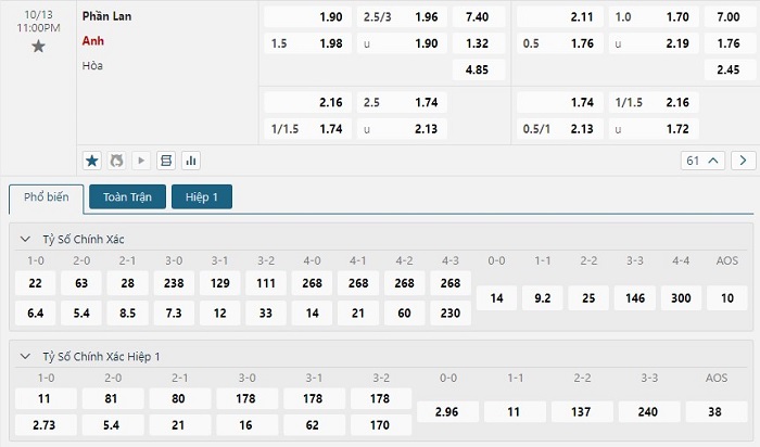 Soi kèo châu Á, kèo chấp Phần Lan vs Anh