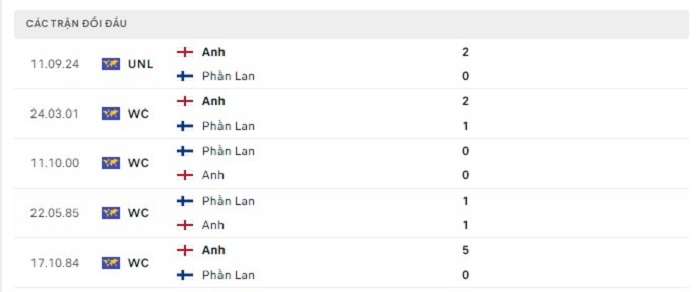 Phần Lan vốn cũng không có được những thành công trước Anh trong những lần gặp nhau trước đó, cụ thể là trong 5 lần gặp nhau trước đây của hai đội Phần Lan cũng chỉ có được 2 trận hoà trong khi nhận tới 3 thất bại theo mốc kèo châu Âu của trận đấu, tại sân chơi Nations League mùa giải năm nay với Phần Lan họ cũng nhận tới 3 thất bại theo mốc kèo châu Âu cả trận có thể thấy được bộ mặt thực sự yếu kém tại bảng đấu này, chính vì vậy mà việc Anh có được một thắng lợi theo kèo châu Âu của trận đấu cũng là khả thi.