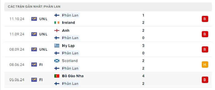 Bảng bóng đá trận đấu Phần Lan vs Anh