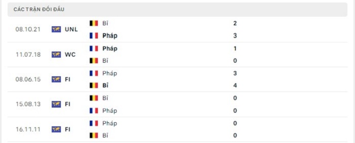 Lịch sử đối đầu của Pháp vs Bỉ
