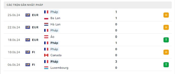 Phong độ gần đây Pháp vs Bỉ