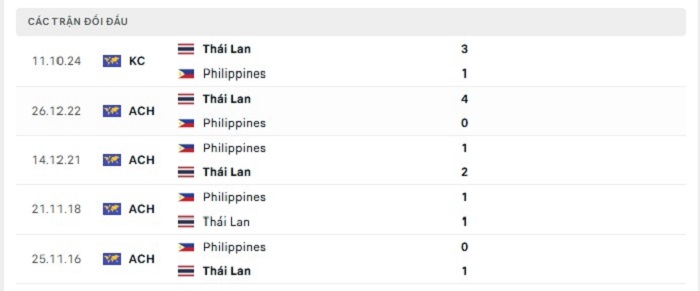 Bảng bóng đá trận đấu Philippines vs Thái Lan
