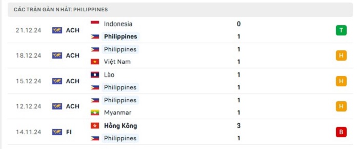Phong độ gần đây Philippines vs Thái Lan