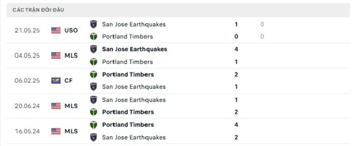 Lịch sử đối đầu của Portland Timbers vs San Jose Earthquakes