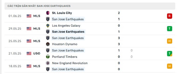• Phong độ San Jose Earthquakes