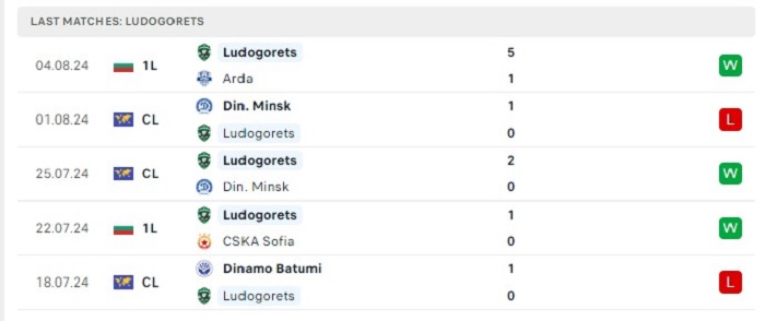- Phong độ Ludogorets Razgrad