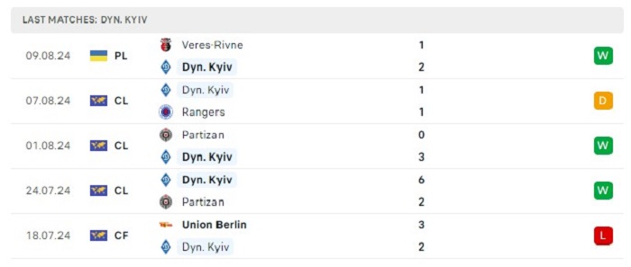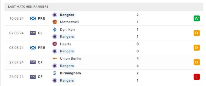Phong độ gần đây Rangers FC vs Dinamo Kiev