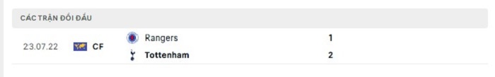 Bảng bóng đá trận đấu Rangers vs Tottenham