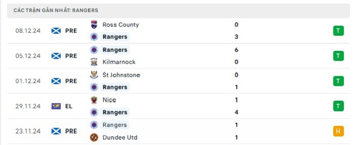 - Phong độ Rangers