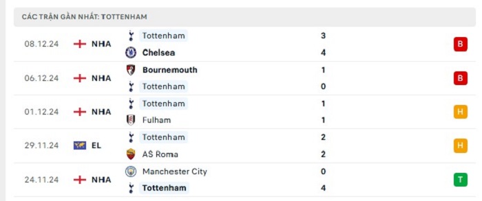 - Phong độ Tottenham