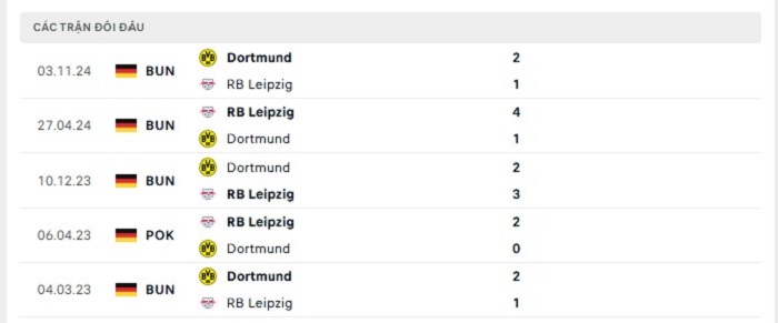 Bảng bóng đá trận đấu RB Leipzig vs Borussia Dortmund