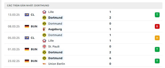 - Phong độ Borussia Dortmund