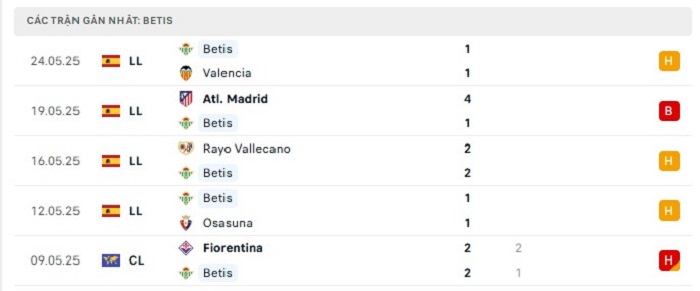 Thành tích trong quá khứ giữa Real Betis và Chelsea có thể thấy được tỷ lệ ghi bàn của hai đội cũng không quá cao, điều này cũng đã thấy được sự cạnh tranh của hai đội ở thời điểm này. Hơn nữa đây chính là trận chung kết mang nhiều ý nghĩa và quan trọng với cả hai đội trong việc tìm kiếm danh hiệu càng khiến cho cả hai thận trọng hơn, đây cũng chính là lý do quan trọng mà khó có thể kỳ vọng tới một trận đấu bùng nổ về mặt tỷ số ghi được cho cả hai đội.