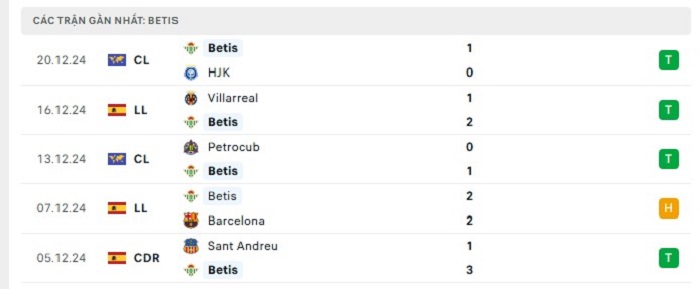 - Phong độ Real Betis