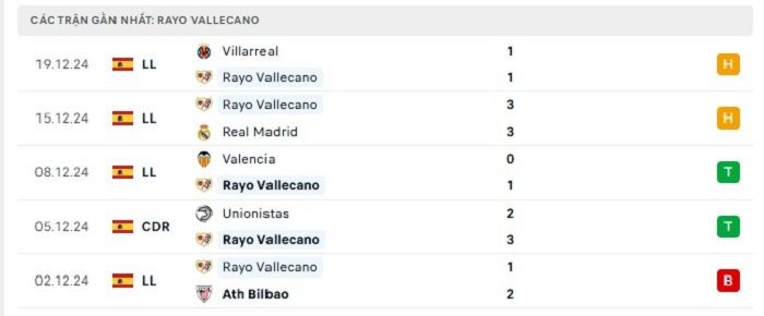 - Phong độ Rayo Vallecano