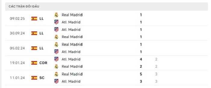 Bảng  bóng đá trận đấu Real Madrid vs Atletico Madrid