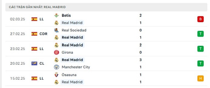 • Phong độ Real Madrid