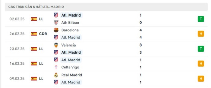 • Phong độ Atletico Madrid