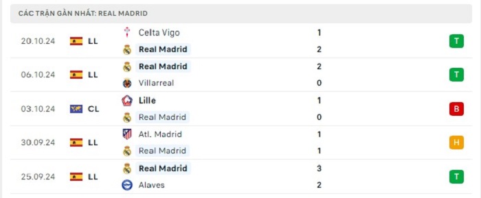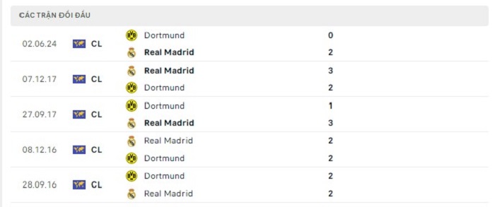 Phong độ gần đây Real Madrid vs Borussia Dortmund