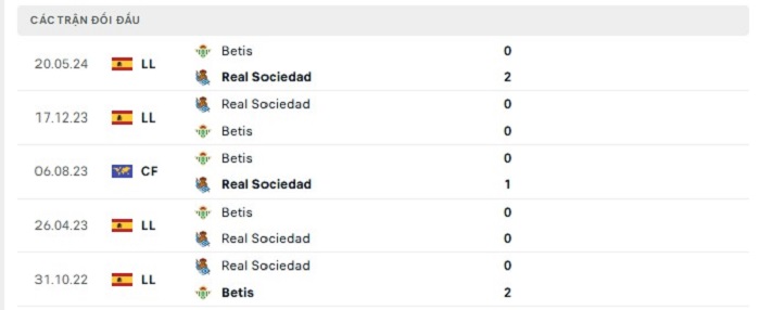 Giữa Real Soceidad và Real Betis trong quá khứ có thể thấy được sự cân bằng đáng kể của hai đội, Real Soceidad thắng 2 thì cũng thua 3 trước đối thủ này trong 10 lần hai đội gặp nhau, có tới 5 trận đấu giữa hai đội đã có kết quả hoà kèo châu Âu cho thấy được việc có thể phân thắng bại giữa Real Soceidad và Real Betis cũng thực sự khó, chính vì vậy mà ở mùa giải khi phong độ của hai đội đang có sự cân bằng với nhau thì khả năng chia điểm cũng trở nên khả quan hơn nhiều.