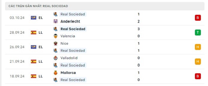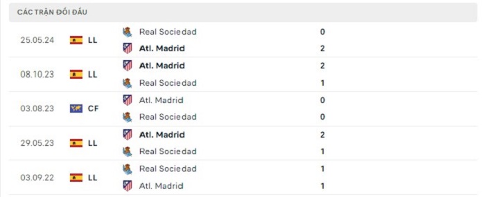 Phong độ gần đây Real Sociedad vs Atletico Madrid